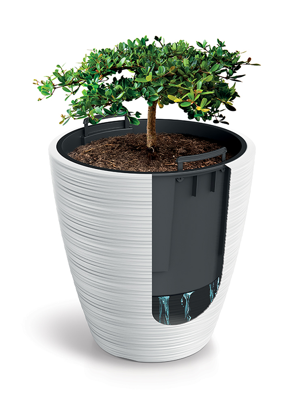 A vízszintes barázdák különleges és stílusos jelleget kölcsönöznek ezeknek a kaspóknak, látványos textúrát teremtve. Modern formatervezésük tökéletesen illeszkedik az elegáns, minimalista belső terekhez, ugyanakkor a klasszikusabb berendezésekhez is. A kaspó praktikus belső betéttel van ellátva, amely megkönnyíti az ültetést, javítja az öntözőrendszert, és egyszerűvé teszi az átültetést. A betét emellett segít a vízszint jobb ellenőrzésében, elősegítve az egészségesebb növekedést. A funkcionalitás és az esztétika e kombinációja ideális választássá teszi a szobanövények szerelmesei számára, akik értékelik a szép és ápolt növényzetet.